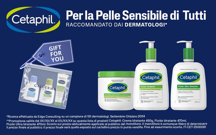 Cetaphil: acquistando i prodotti selezionati della gamma (come la Crema Idratante da 450g o i Fluidi da 470ml), riceverai in OMAGGIO l'esclusivo kit Galderma. Proteggi la barriera cutanea di tutta la famiglia con formulazioni delicate e ipoallergeniche.